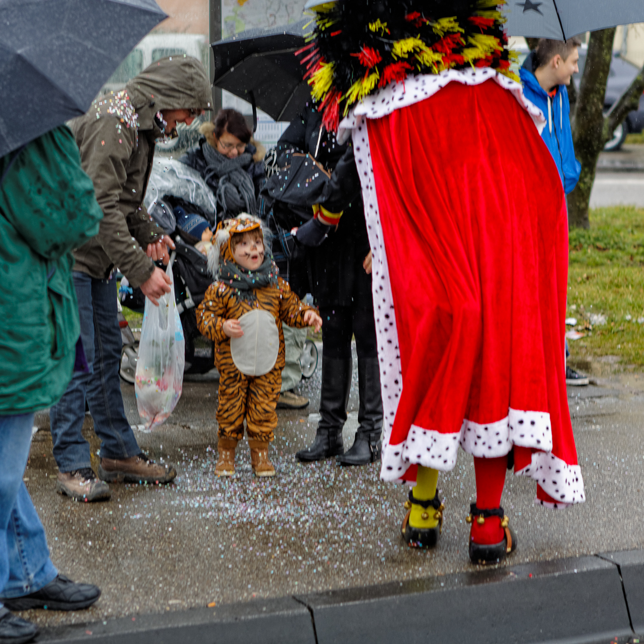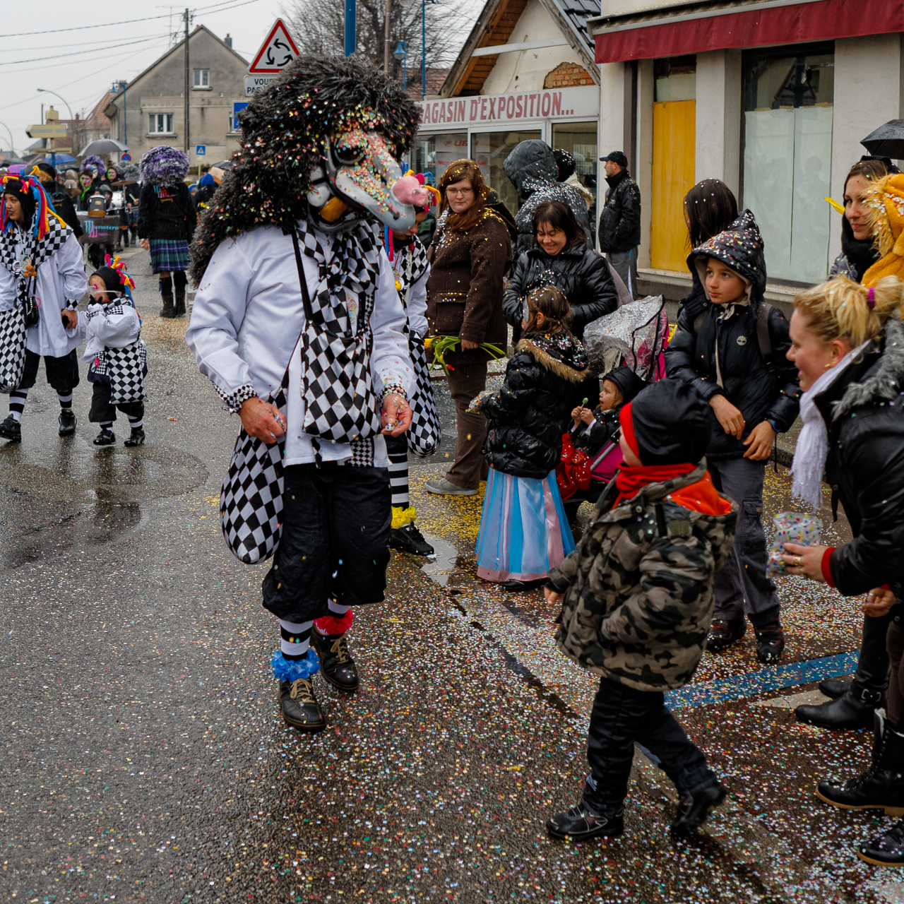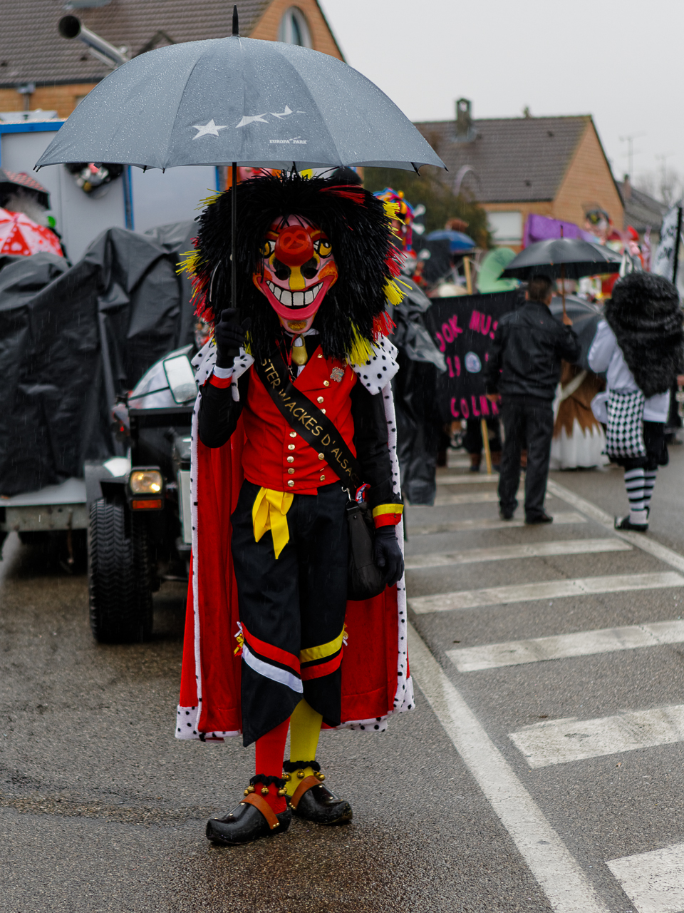 Il pleuvait cette année au carnaval de Pfastatt. Occasion rêvée pour Mister Wackes d’Alsace de sortir son beau parapluie gris. Ce ne sont pas quelques gouttes de pluie qui vont perturber cette journée festive. Même le public ne s’est pas laissé décourager et est venu nombreux assister à la cavalcade des Spackwagges, ces joyeux wagges aux petits cochons roses sur le bout de leur nez.