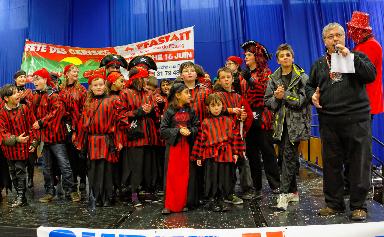 À l’issue du défilé de carnaval, la fête s’est prolongée dans la salle polyvalente. Jean Pozzo organisateur de cette sympathique manifestation, ami de Mister Wackes d’Alsace, présentait les acteurs de cette belle journée et les guggenmusik nous jouaient leurs plus beaux morceaux.