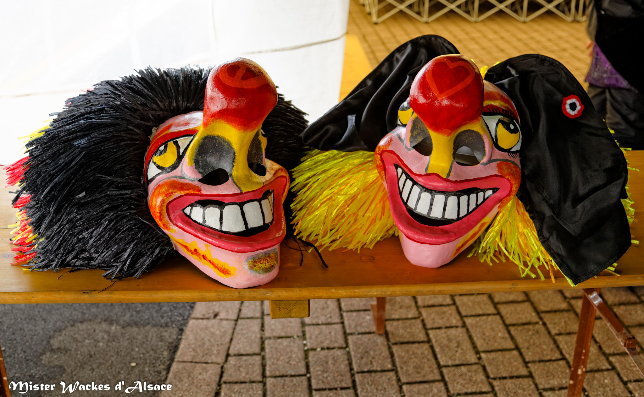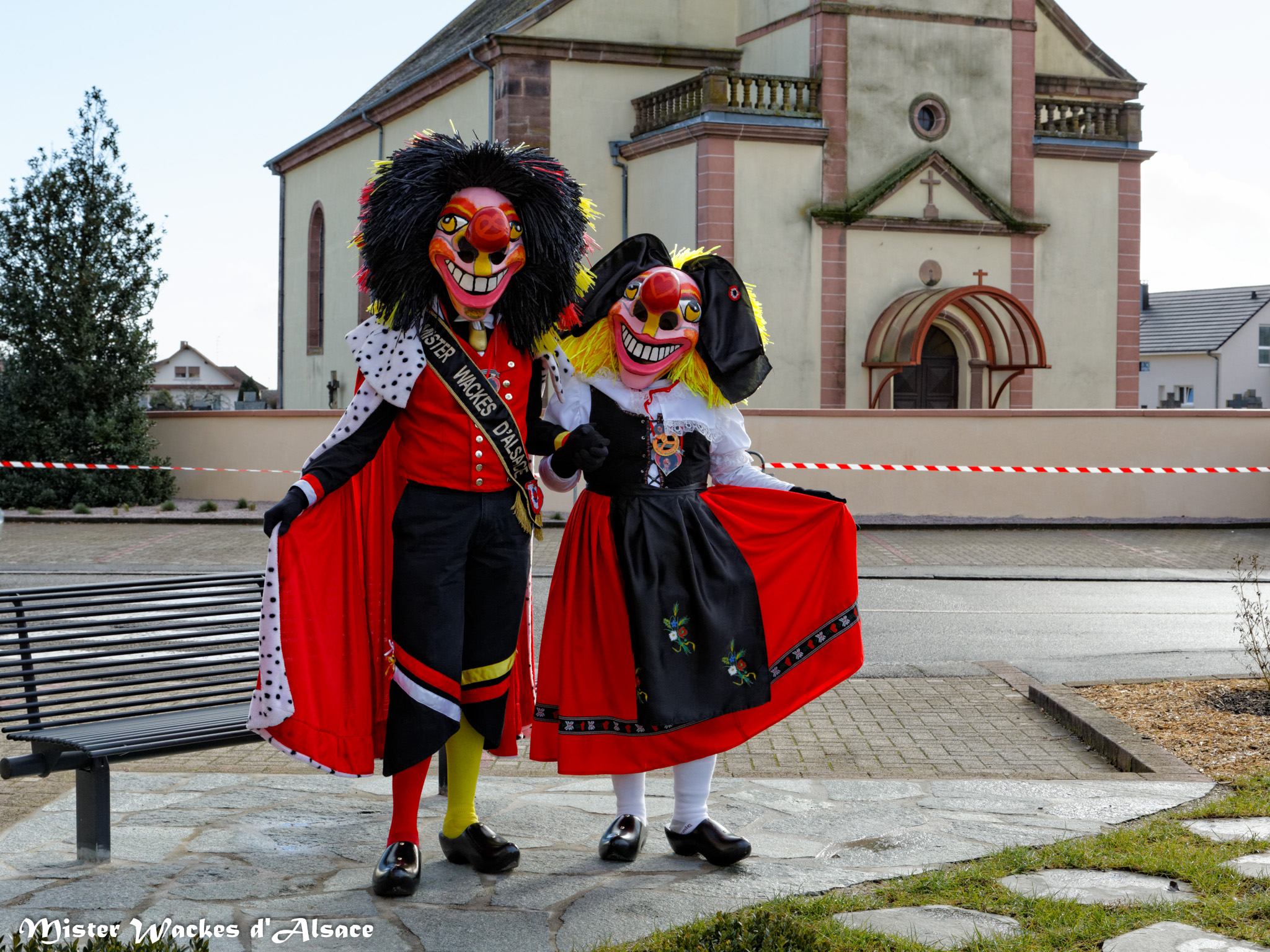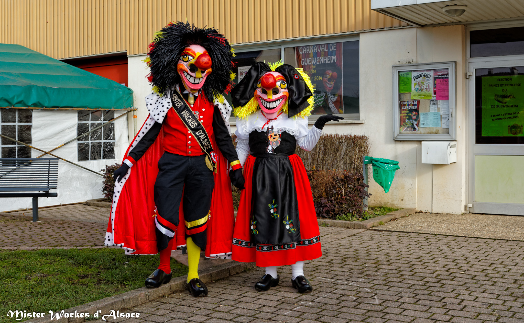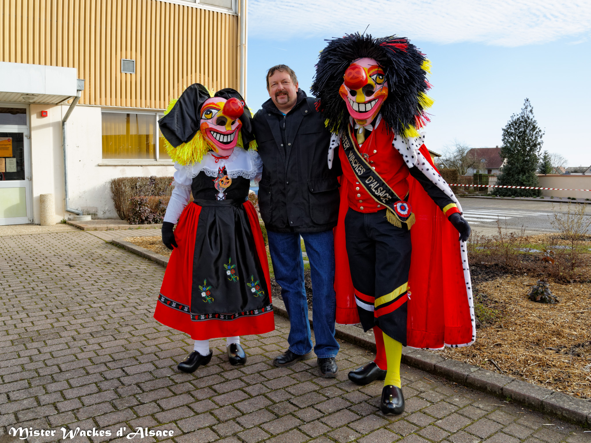 Rappelez-vous, il y a un an jour pour jour, Mister Wackes d’Alsace fait sa première apparition au sympathique carnaval de Guewenheim. Depuis notre gentil garnement a fait son petit bout de chemin et arriva ce qui devait arriver … notre filou rencontre sa bien-aimée. La cavalcade de Guewenheim est l’occasion pour Mister Wackes d’Alsace de nous faire la présentation de sa belle dulcinée. Notre malicieux séducteur n’a pas résisté au charme de sa belle wackes alsacienne, aux yeux si pétillants, au sourire si délicieux, à la belle et soyeuse chevelure jaune ornée d’une magnifique coiffe alsacienne, mais surtout au grand cœur que sa chérie Elsa porte sur bout de son nez ! Mais que vont nous réserver ces deux tourtereaux pour leurs prochaines sorties ?