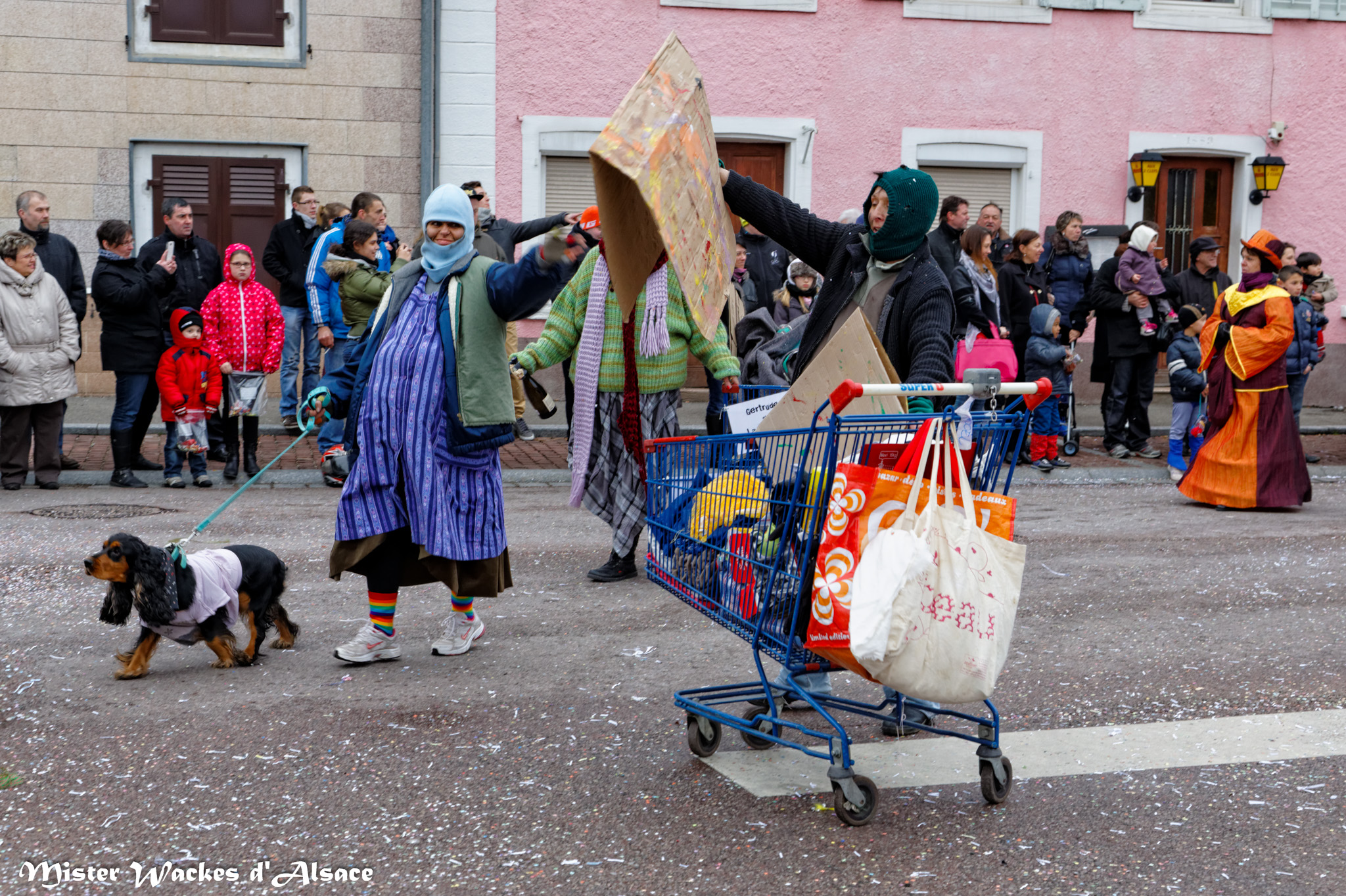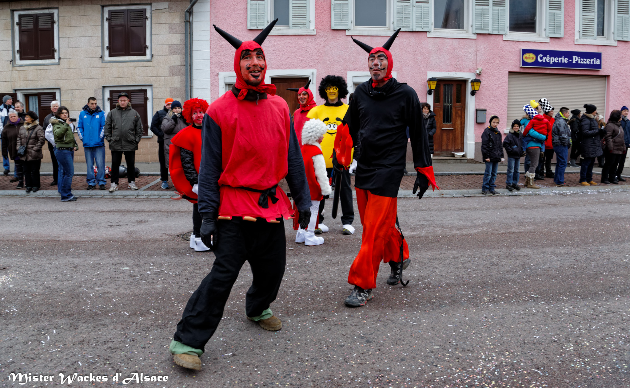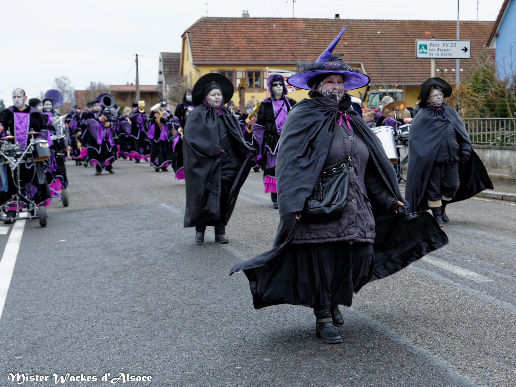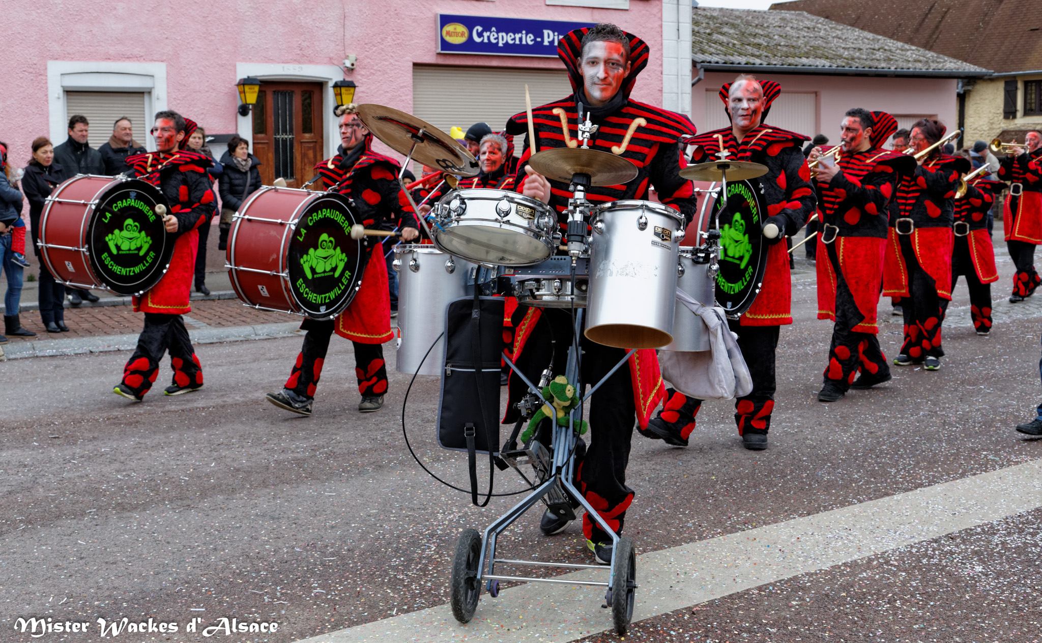 De prestigieuses troupes et cliques de la région ont accompagné cette belle cavalcade carnavalesque. On reconnaitra la Haxa Gugga de Rouffach, la Crapaudière de Eschentzwiller, les Altikirch Waggis … d’Altkirch, les Verructa Storcka de Cernay, les Spatzawaggis de Roderen et bien sûr notre Mister Wackes d’Alsace et sa dulcinée Elsa de Bollwiller.