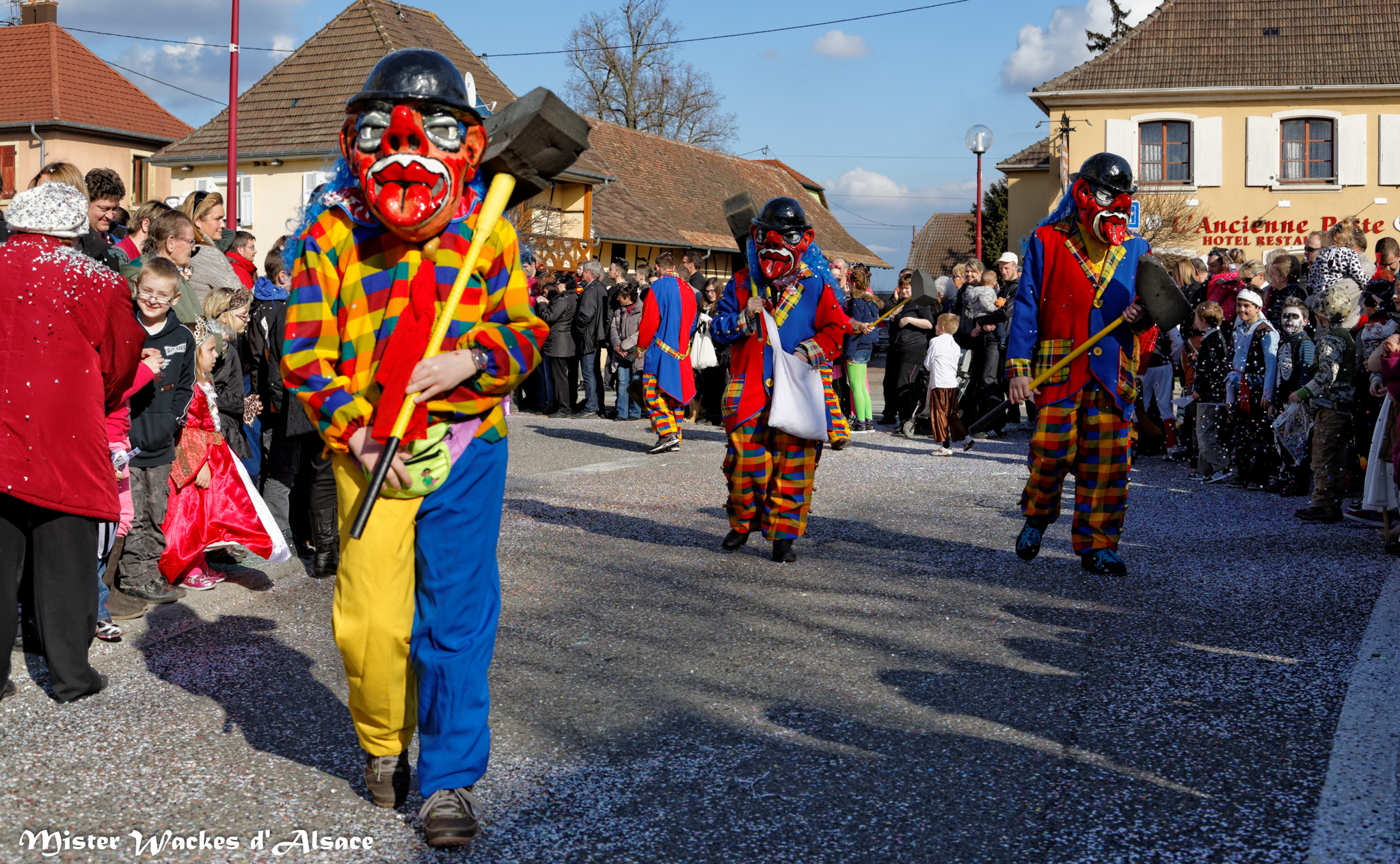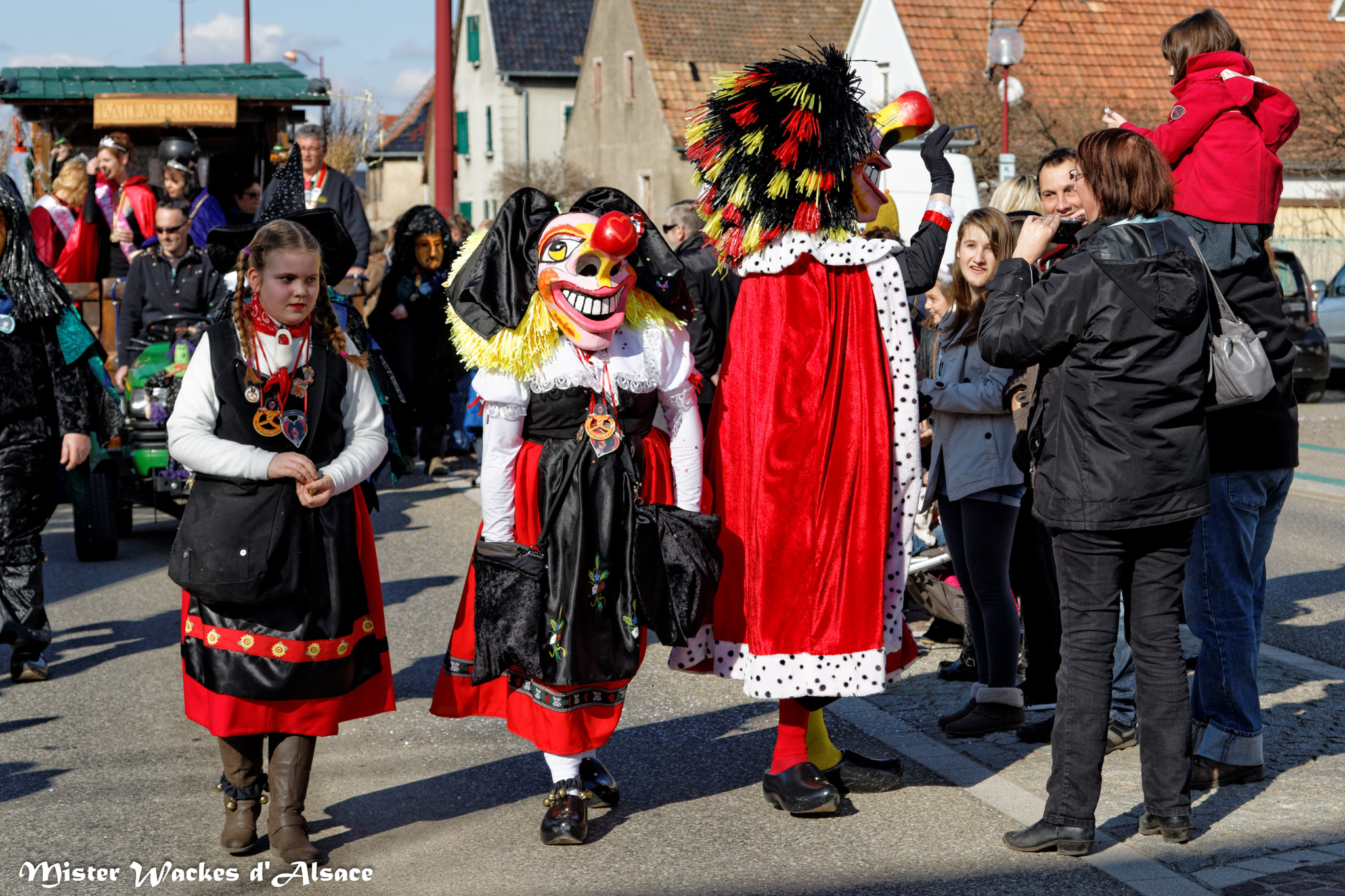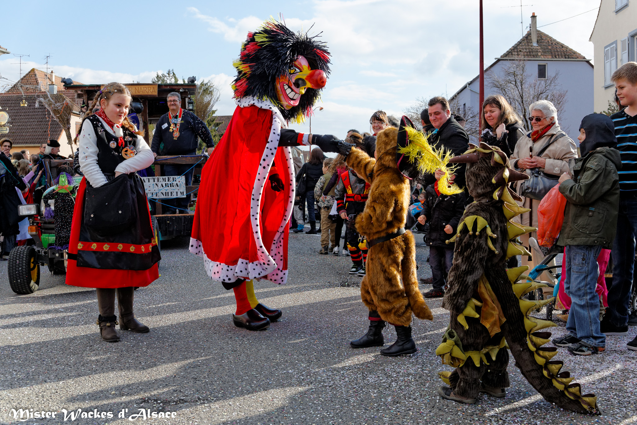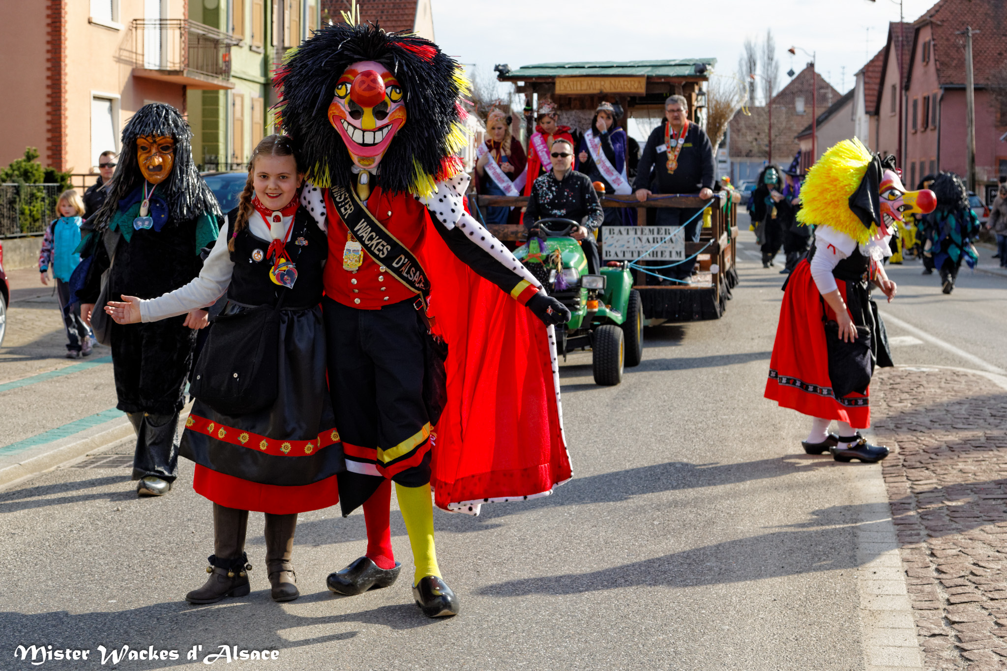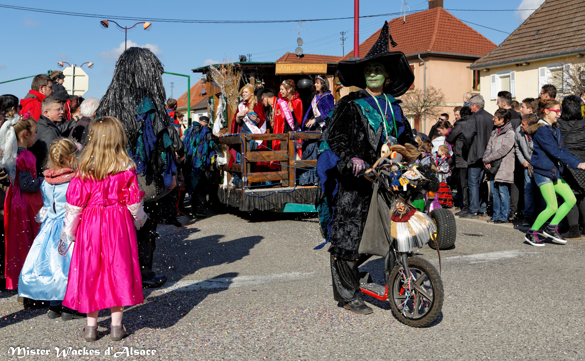 L’ambiance était estivale ce weekend au Carnaval de Battenheim dans le royaume des Battemer Narra. Imaginez une cavalcade aux couleurs éclatantes, un public envouté, des enfants stimulés par les bonbons maléfiques de nos sorcières bien aimées. De sympathiques amis, wagges et guggen venus des contrées voisines ont aidé nos gentilles sorcières à concocter cet éblouissant défilé de carnaval. Mister Wackes d’Alsace et sa petite famille étaient enchantés de participer à cette belle fête.