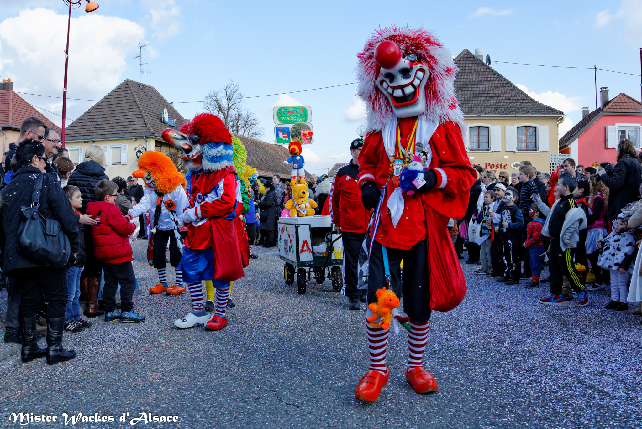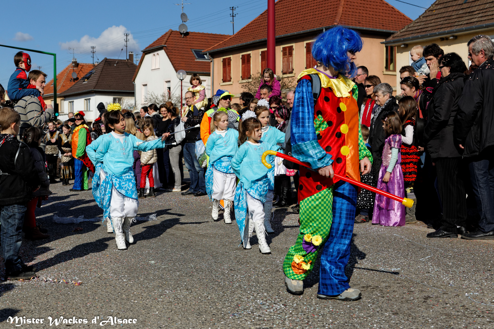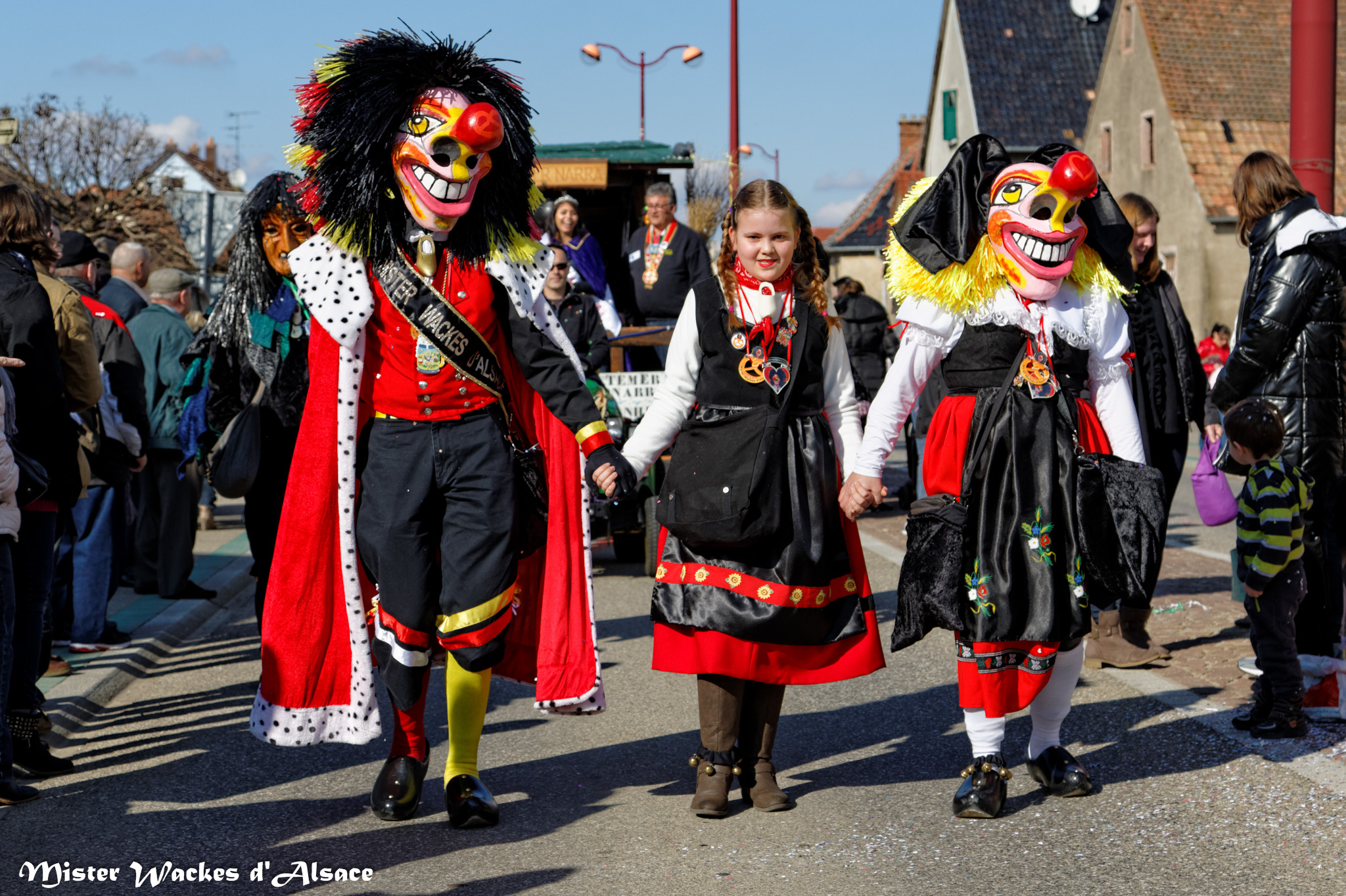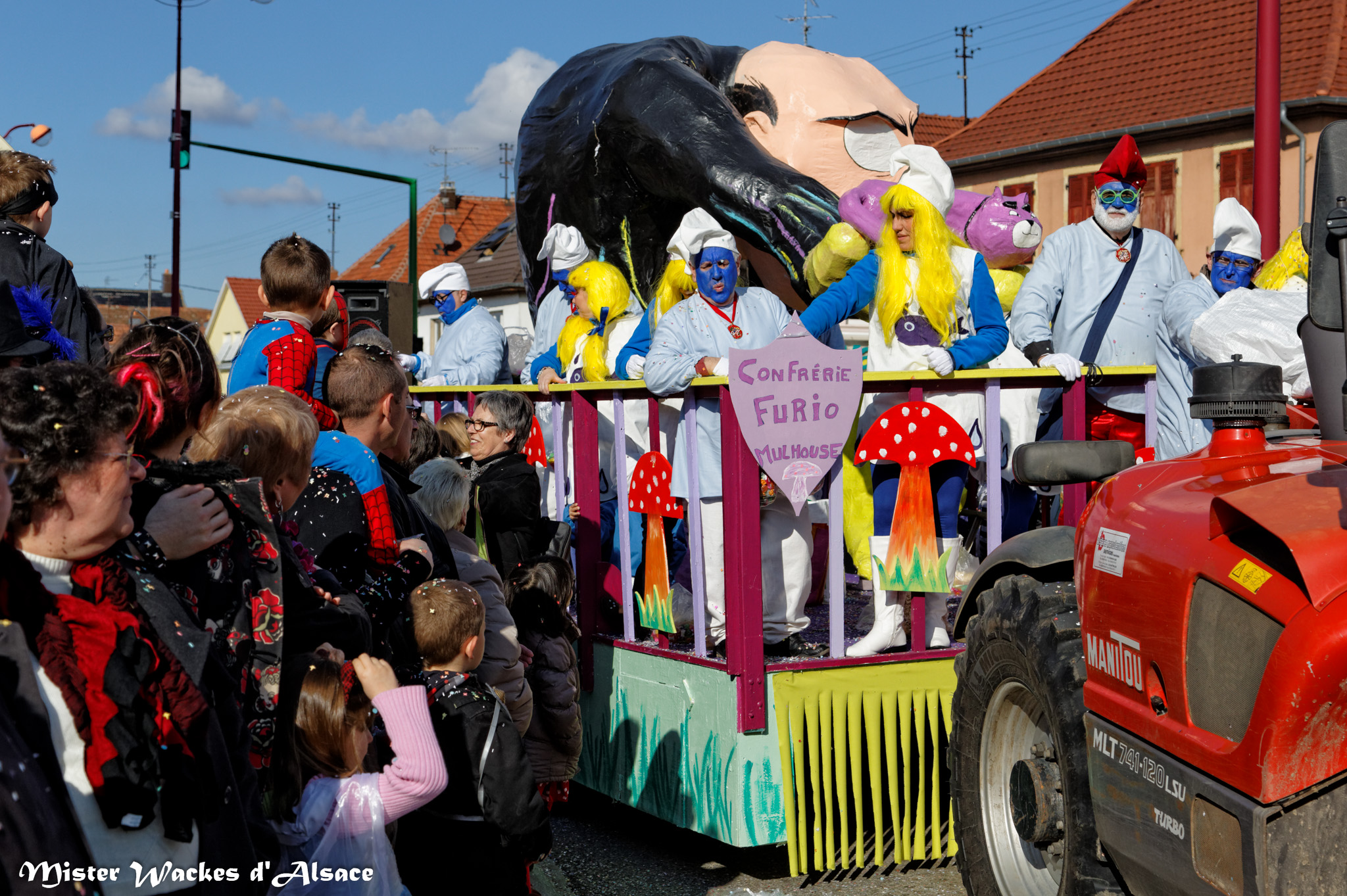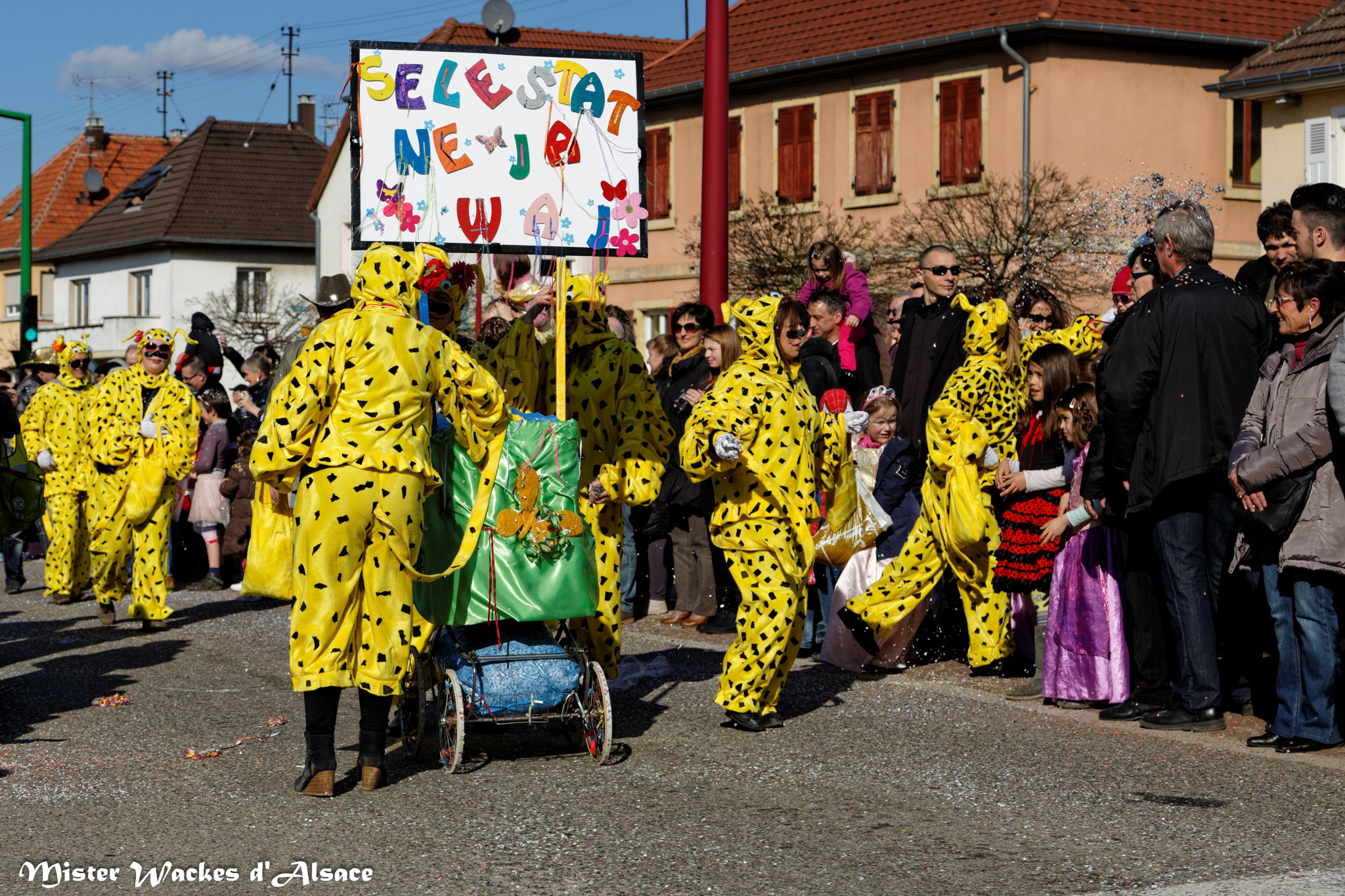 L’ambiance était estivale ce weekend au Carnaval de Battenheim dans le royaume des Battemer Narra. Imaginez une cavalcade aux couleurs éclatantes, un public envouté, des enfants stimulés par les bonbons maléfiques de nos sorcières bien aimées. De sympathiques amis, wagges et guggen venus des contrées voisines ont aidé nos gentilles sorcières à concocter cet éblouissant défilé de carnaval. Mister Wackes d’Alsace et sa petite famille étaient enchantés de participer à cette belle fête.