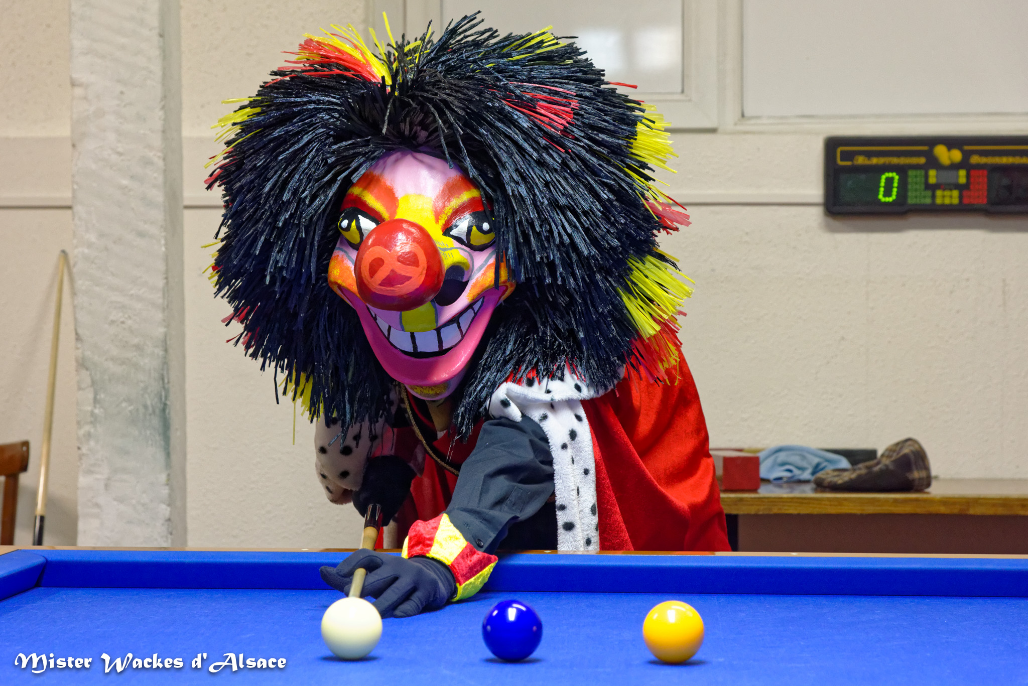Au FC Mulhouse Section Billard, Mister Wackes d’Alsace est accueilli comme un prince, et cette année notre garnement veut prendre sa revanche avec le président du club qui lui avait joué ses meilleurs tours ! … eh oui notre gentil wackes s’était fait battre à son propre jeu de filouterie !