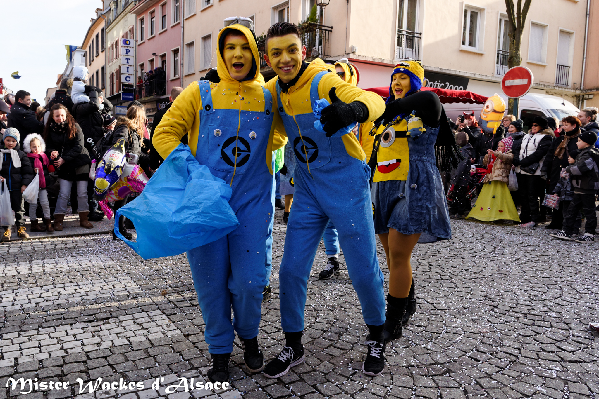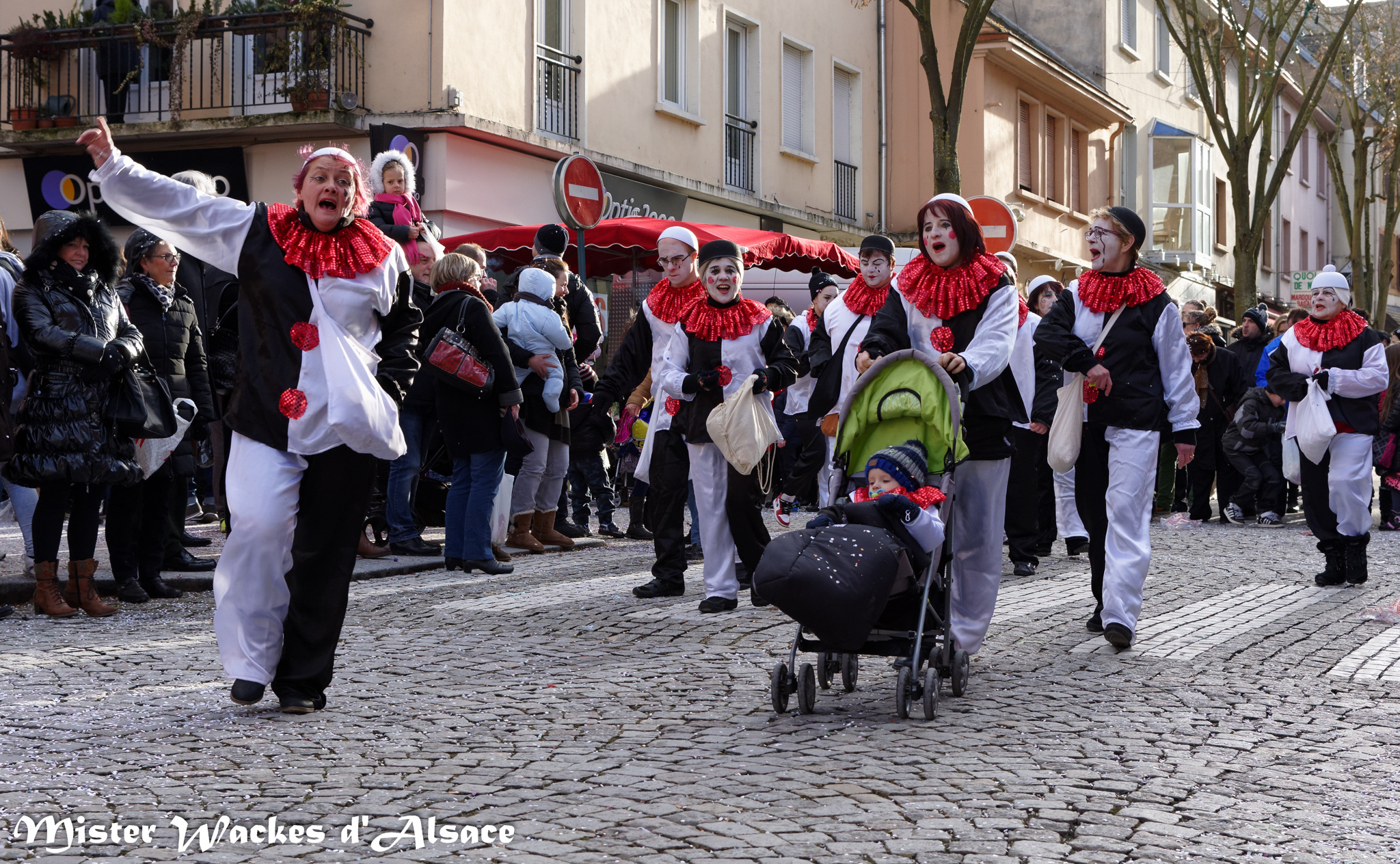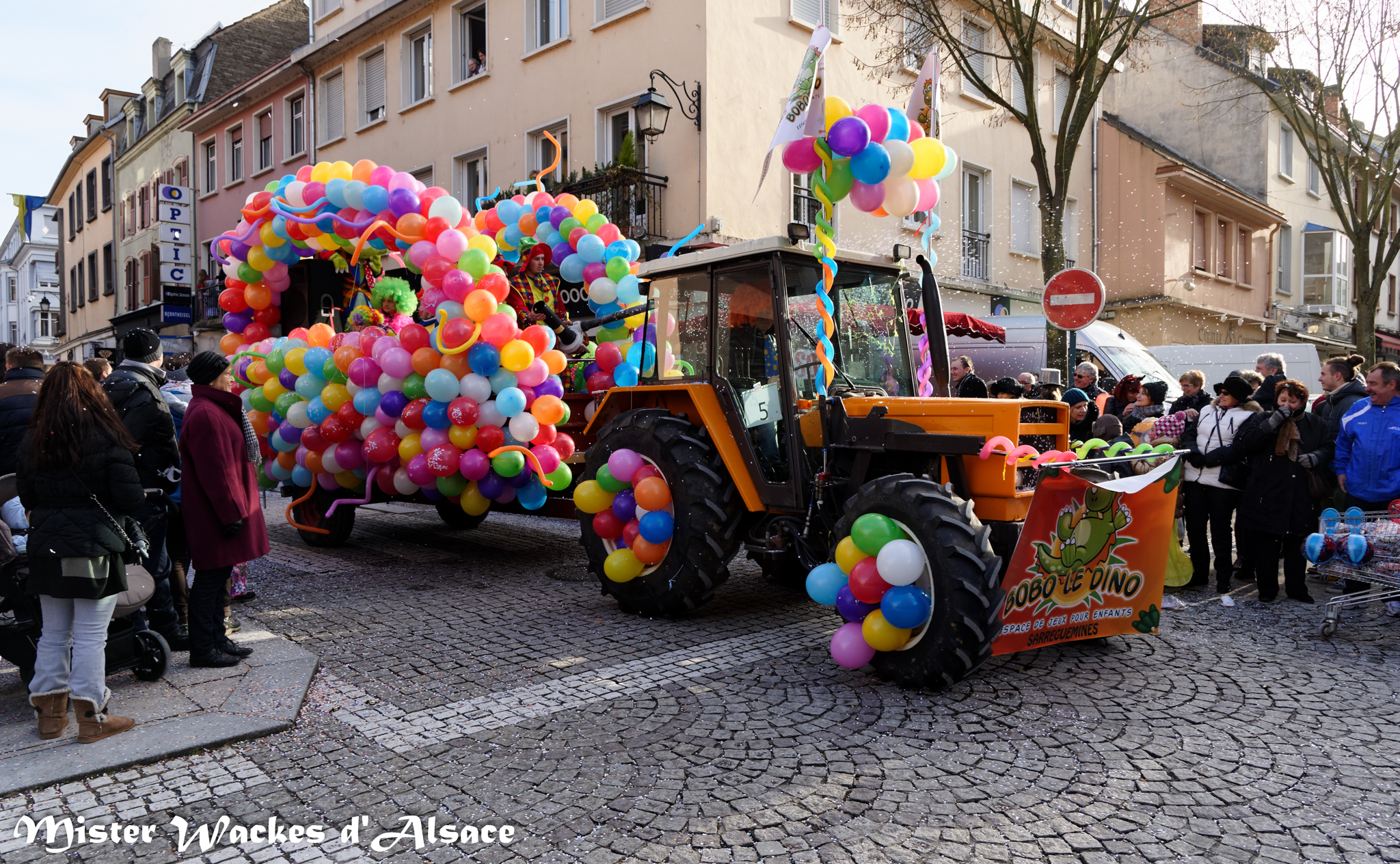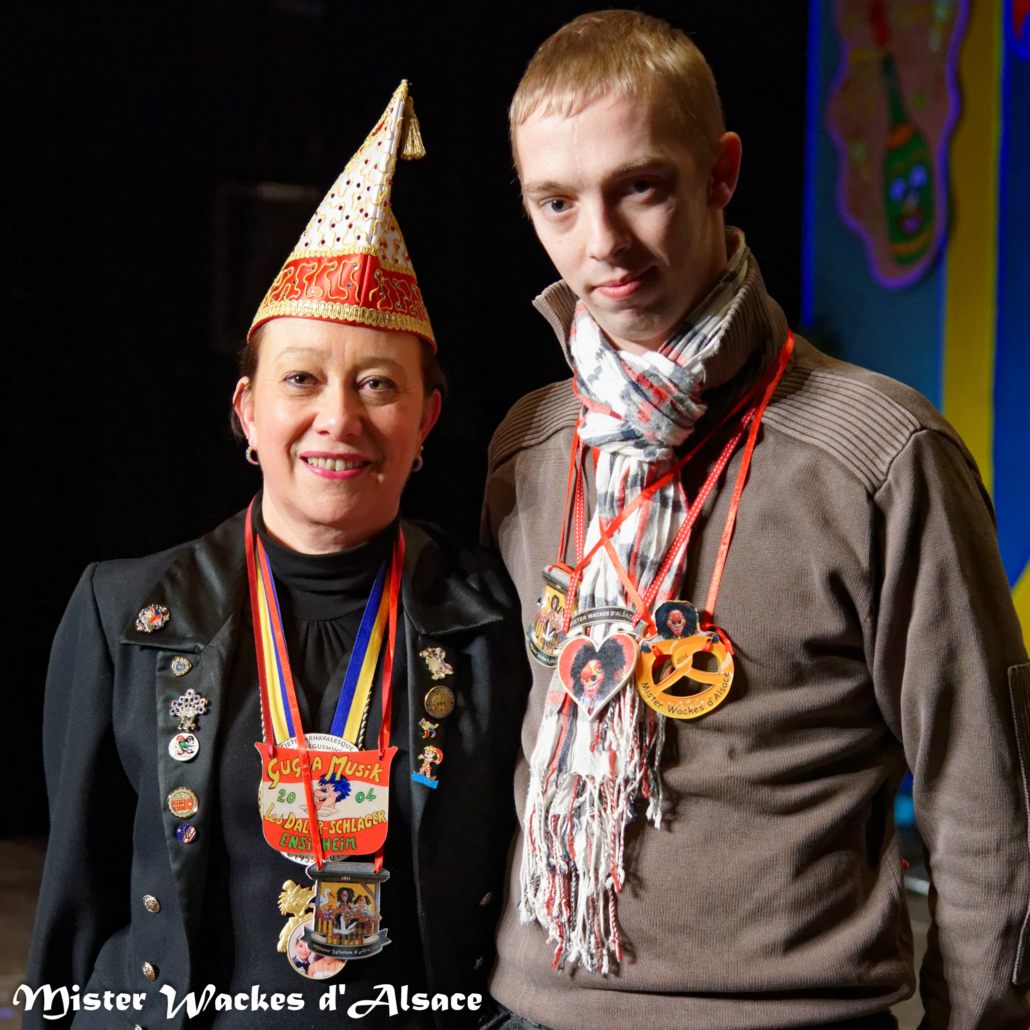 Mister Wackes d’Alsace est un habitué du Carnaval de Sarreguemines — il court après les jeunes filles, parfait la coiffure des mamies avec quelques confettis … d’ailleurs on peut se demander qui est le plus filou des deux, Mister Wackes d’Alsace ou sa dulcinée Elsa … mais très vite ils savent se faire pardonner en offrant bonbons et gadgets aux petits et grands.