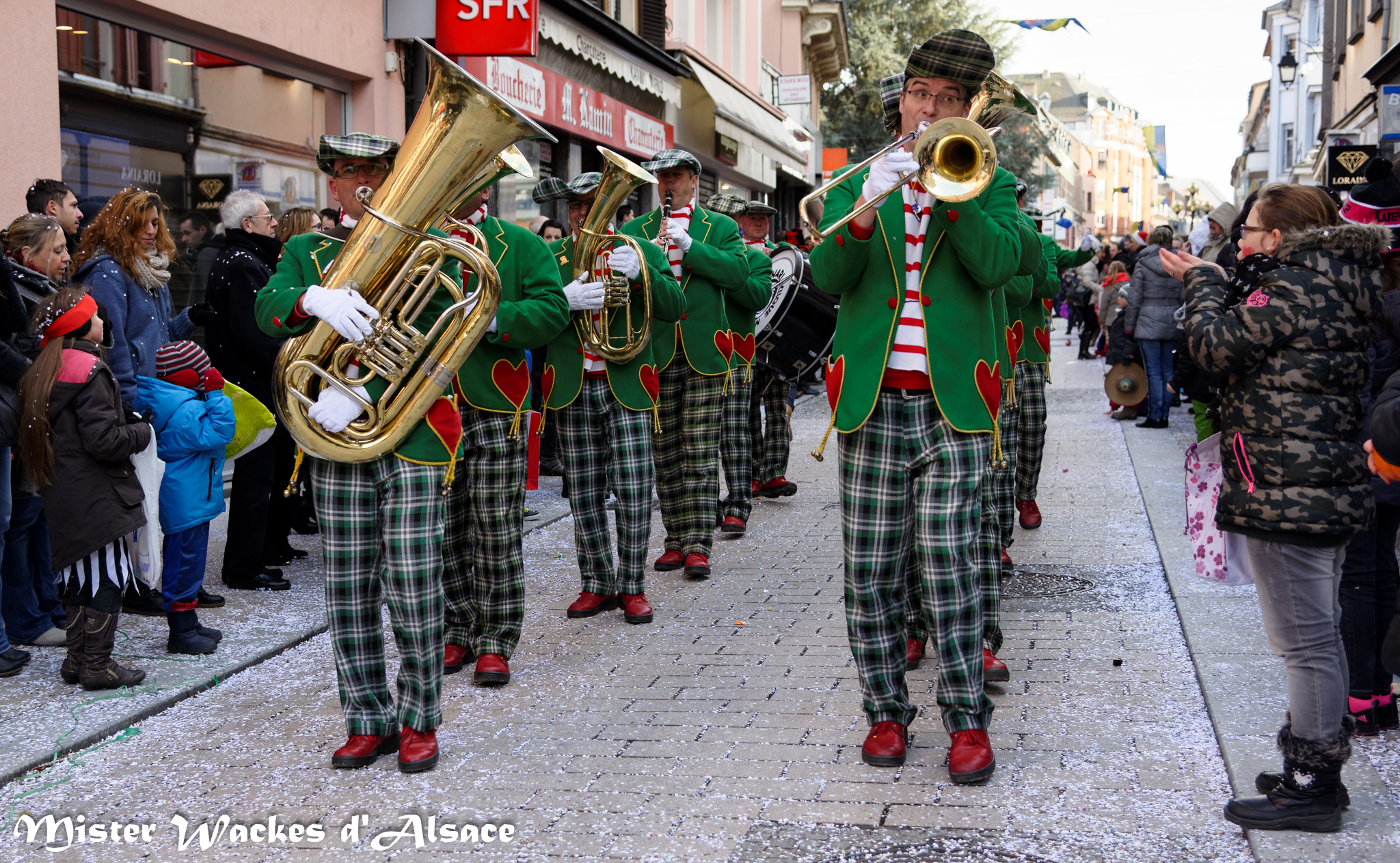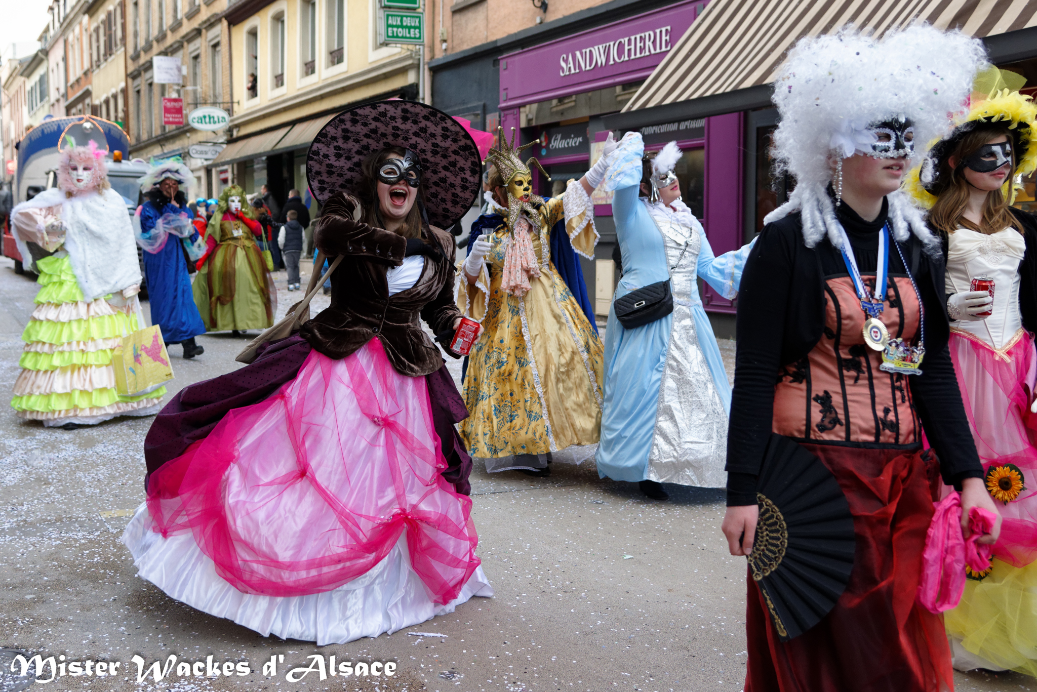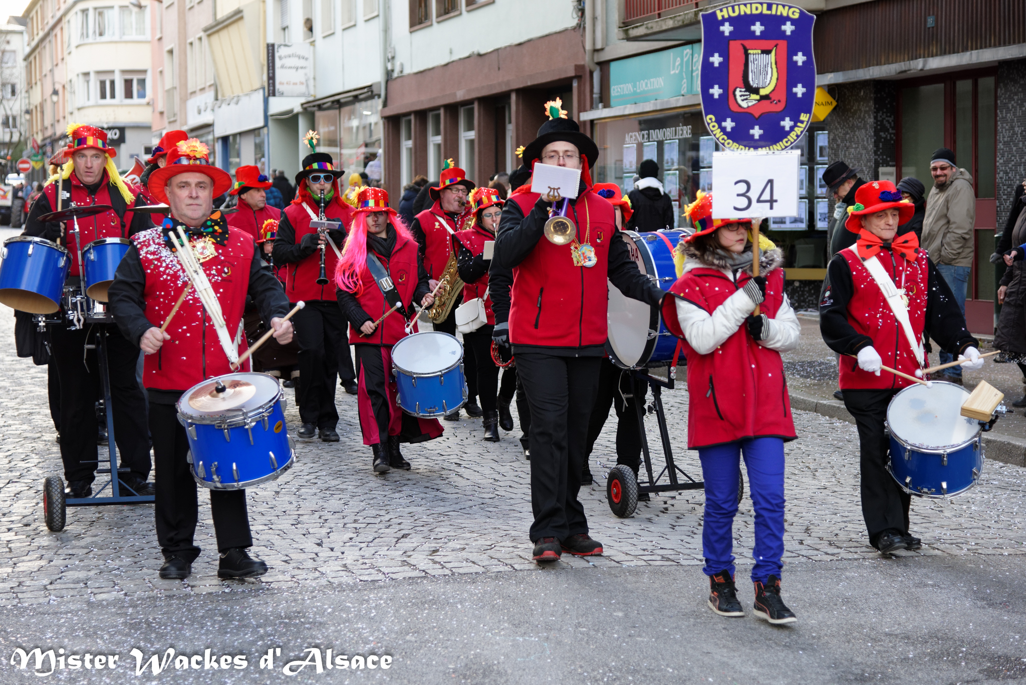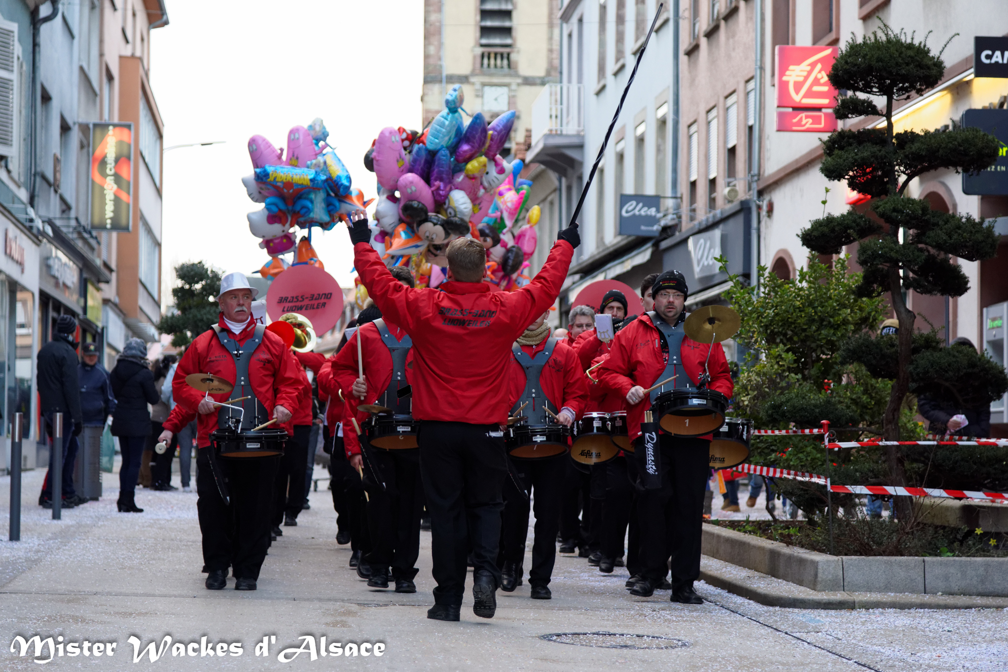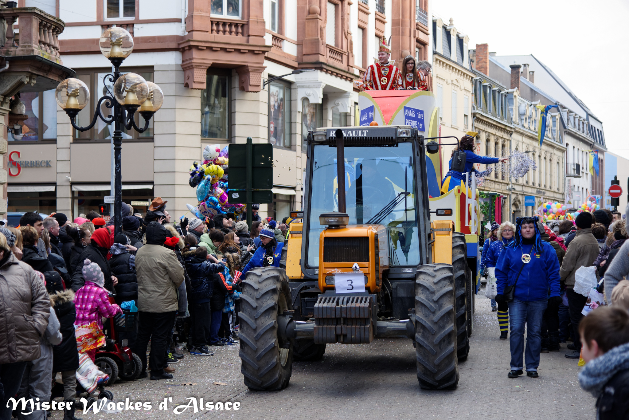 Mister Wackes d’Alsace est un habitué du Carnaval de Sarreguemines — il court après les jeunes filles, parfait la coiffure des mamies avec quelques confettis … d’ailleurs on peut se demander qui est le plus filou des deux, Mister Wackes d’Alsace ou sa dulcinée Elsa … mais très vite ils savent se faire pardonner en offrant bonbons et gadgets aux petits et grands.