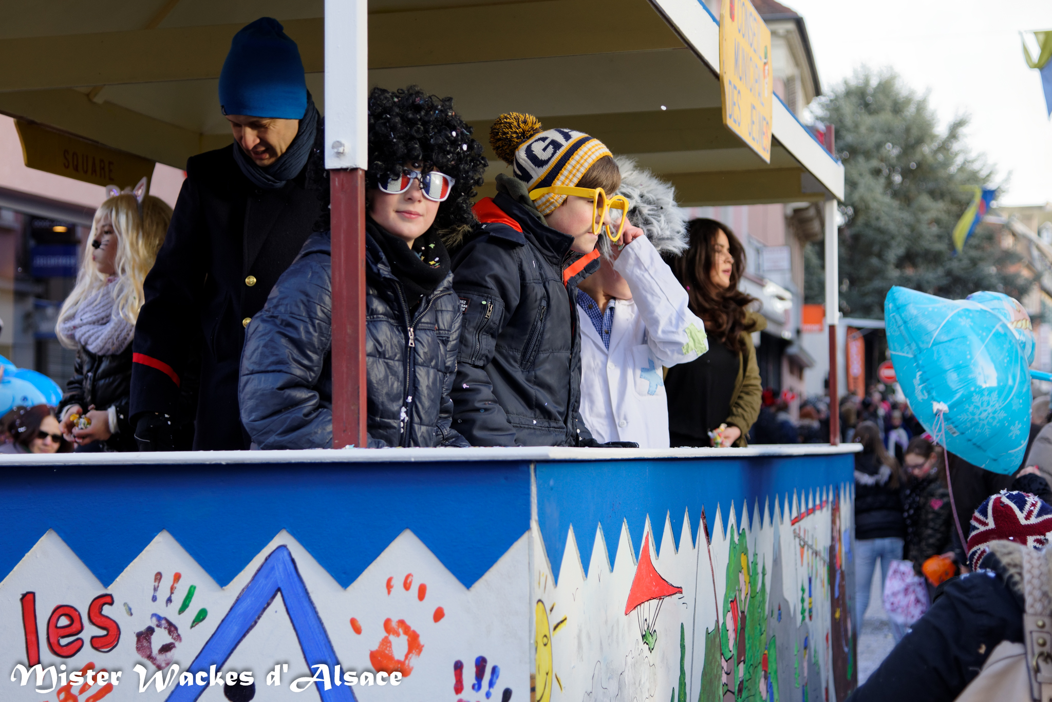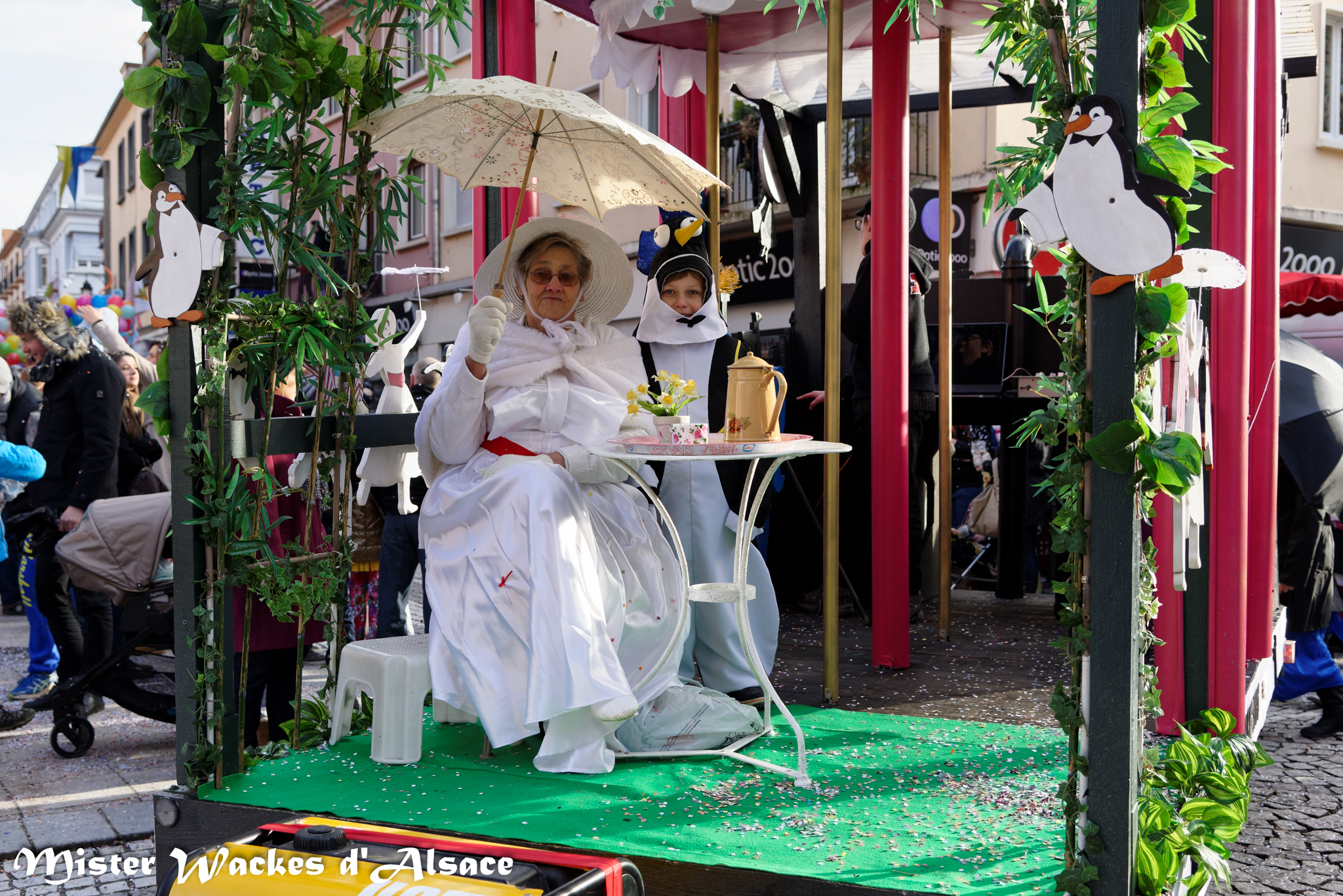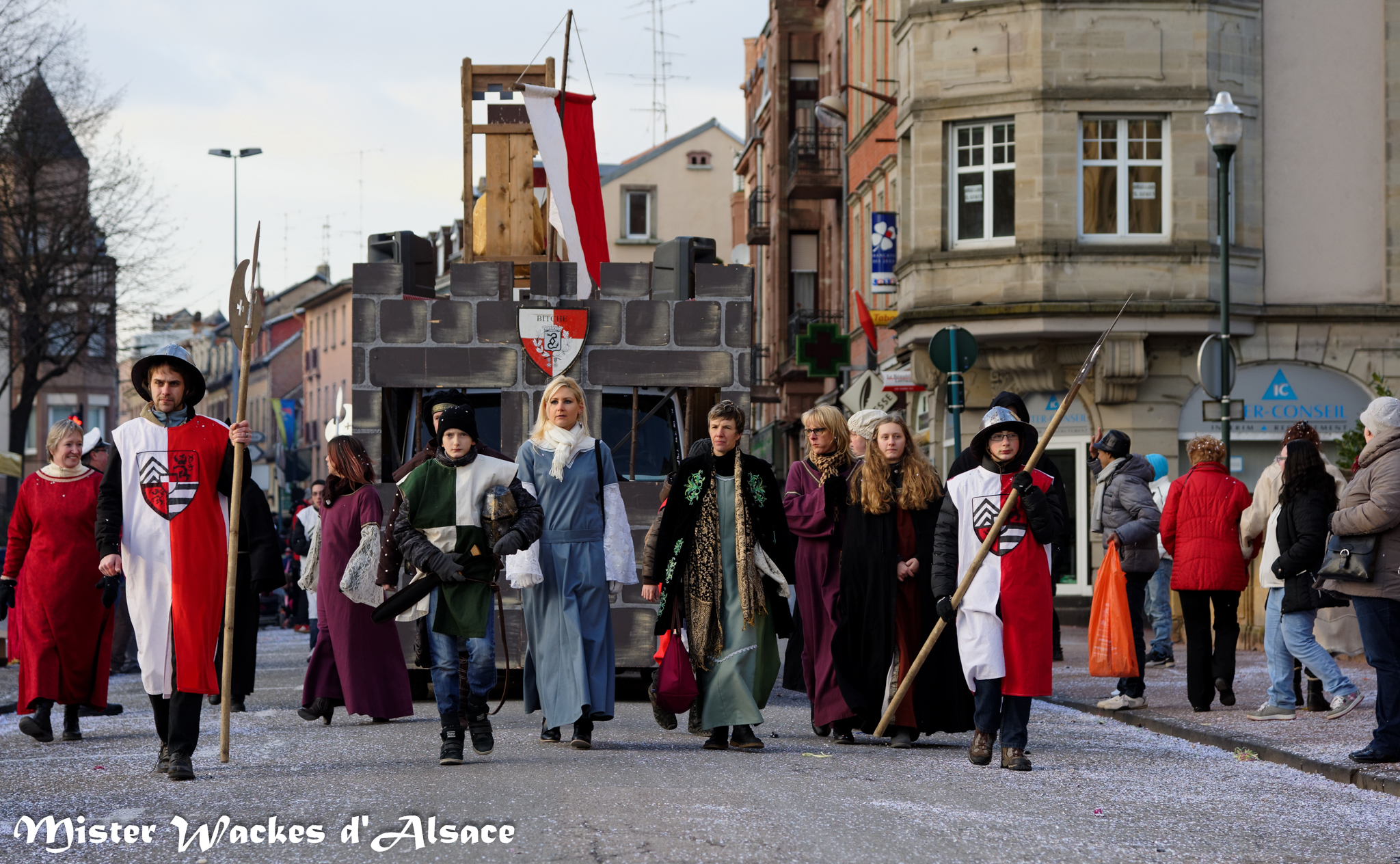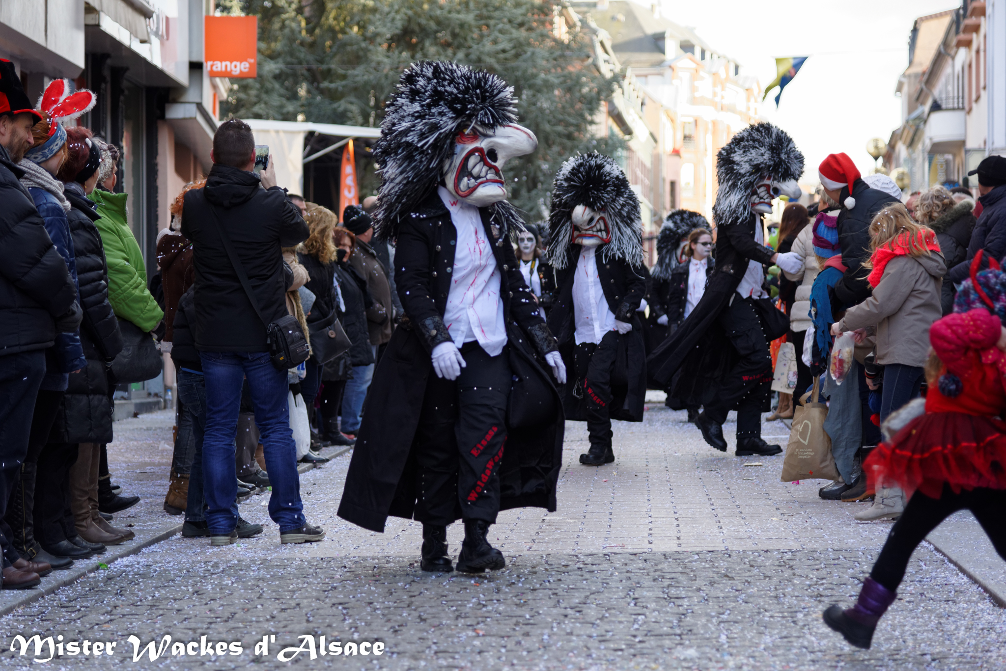 Mister Wackes d’Alsace est un habitué du Carnaval de Sarreguemines — il court après les jeunes filles, parfait la coiffure des mamies avec quelques confettis … d’ailleurs on peut se demander qui est le plus filou des deux, Mister Wackes d’Alsace ou sa dulcinée Elsa … mais très vite ils savent se faire pardonner en offrant bonbons et gadgets aux petits et grands.