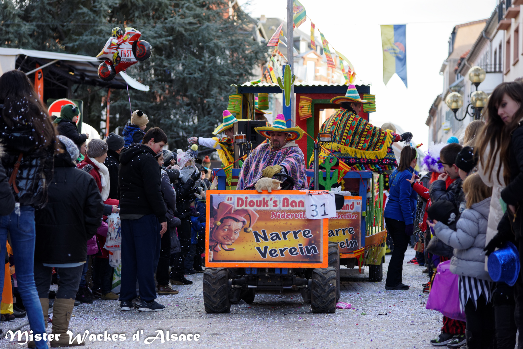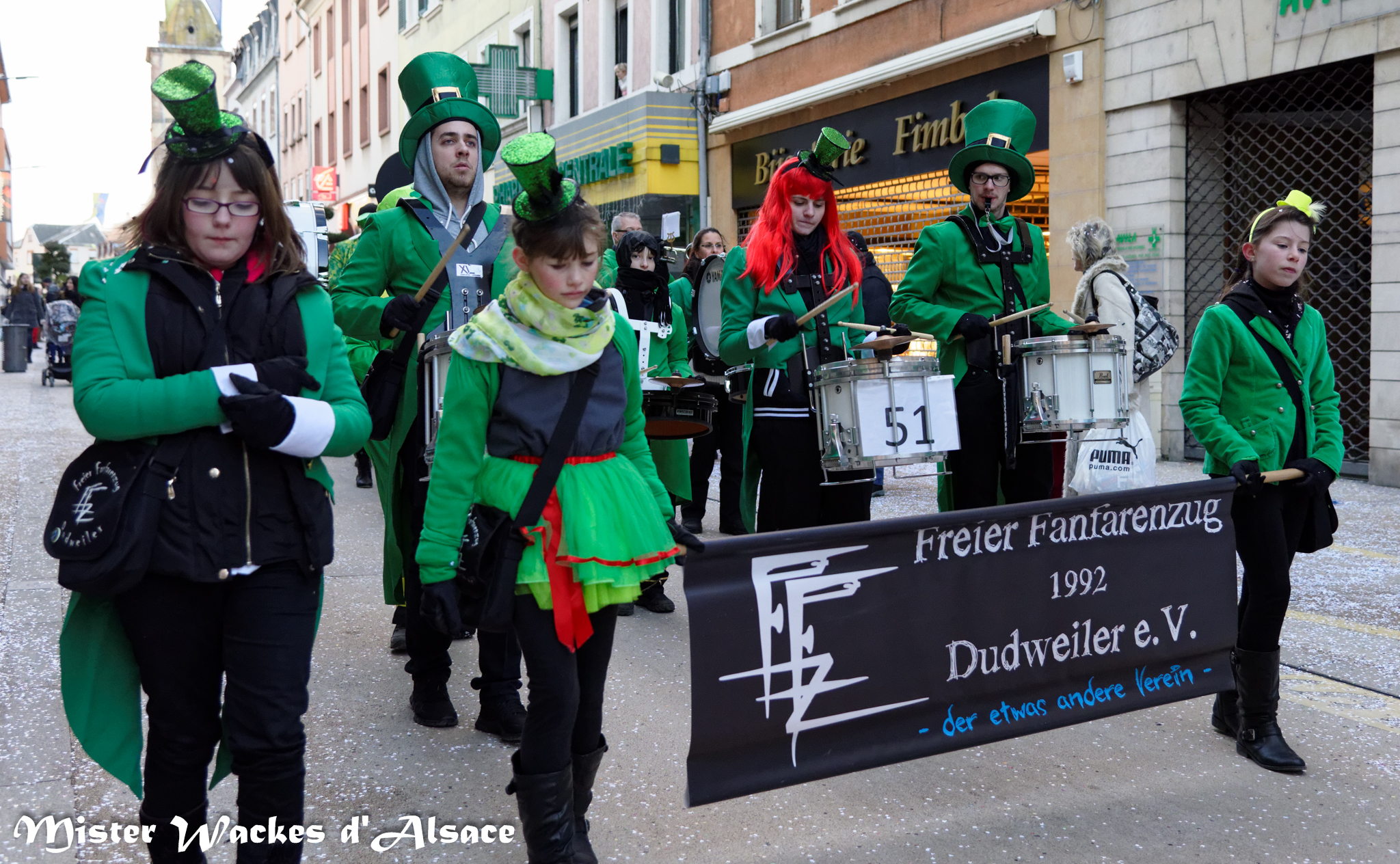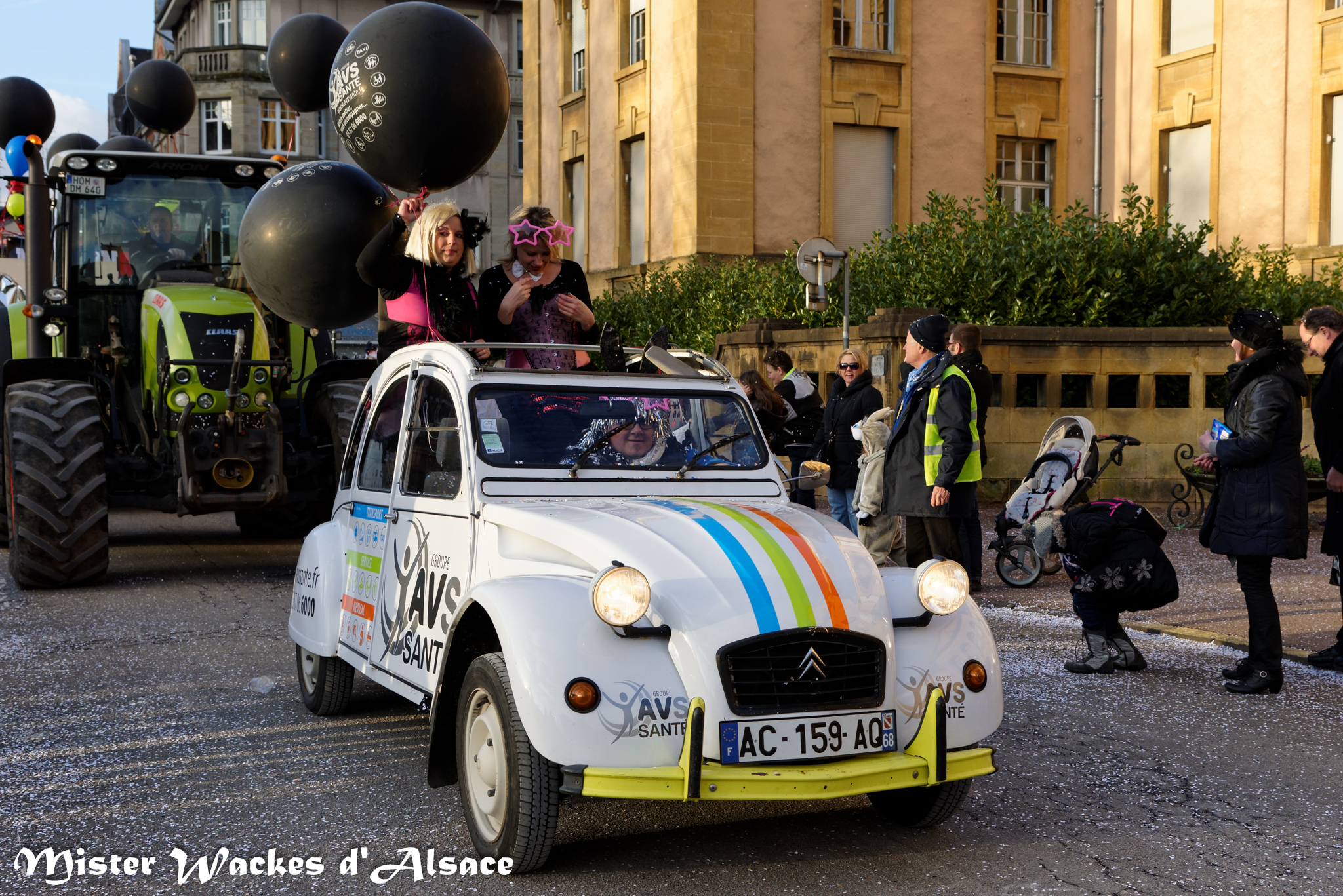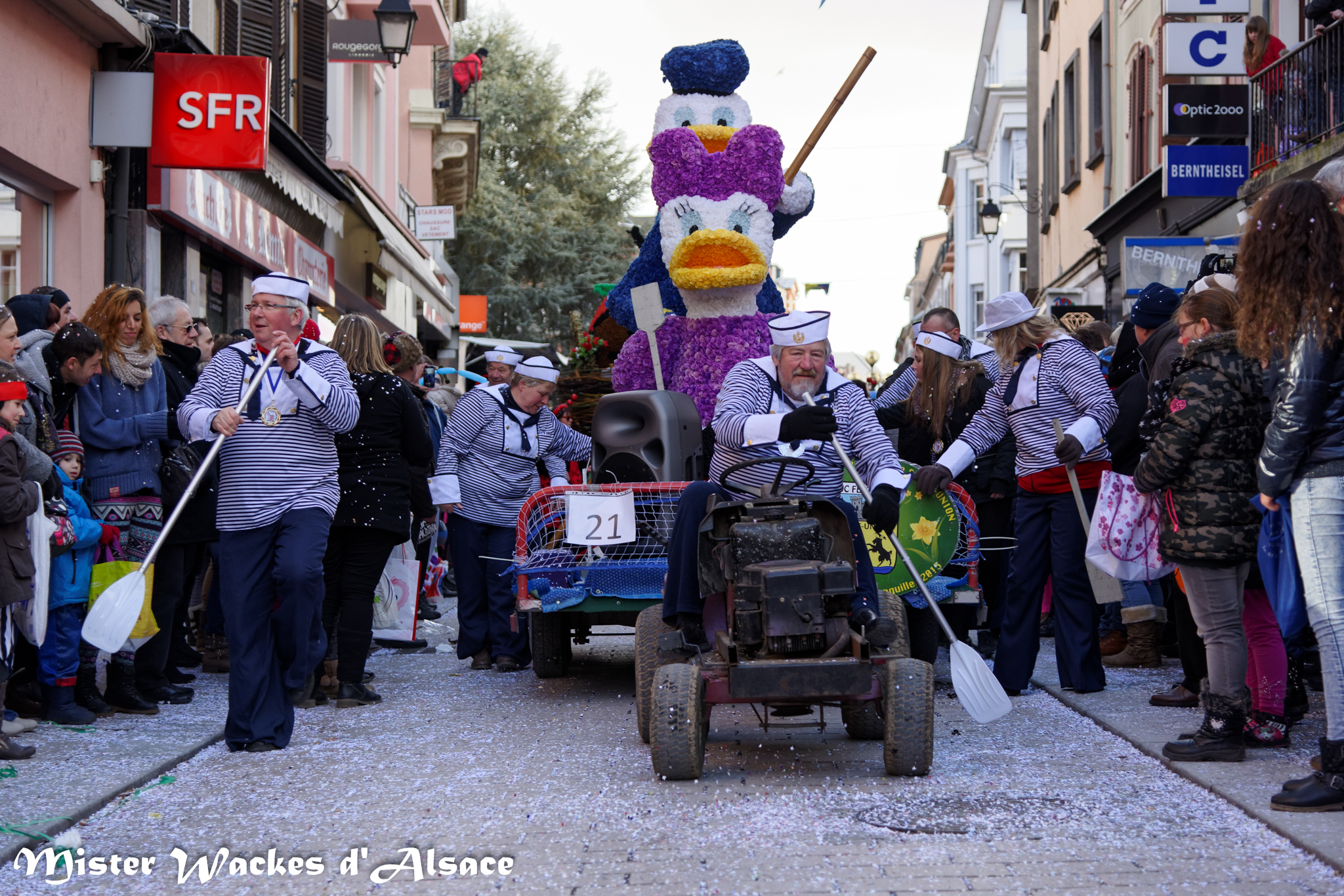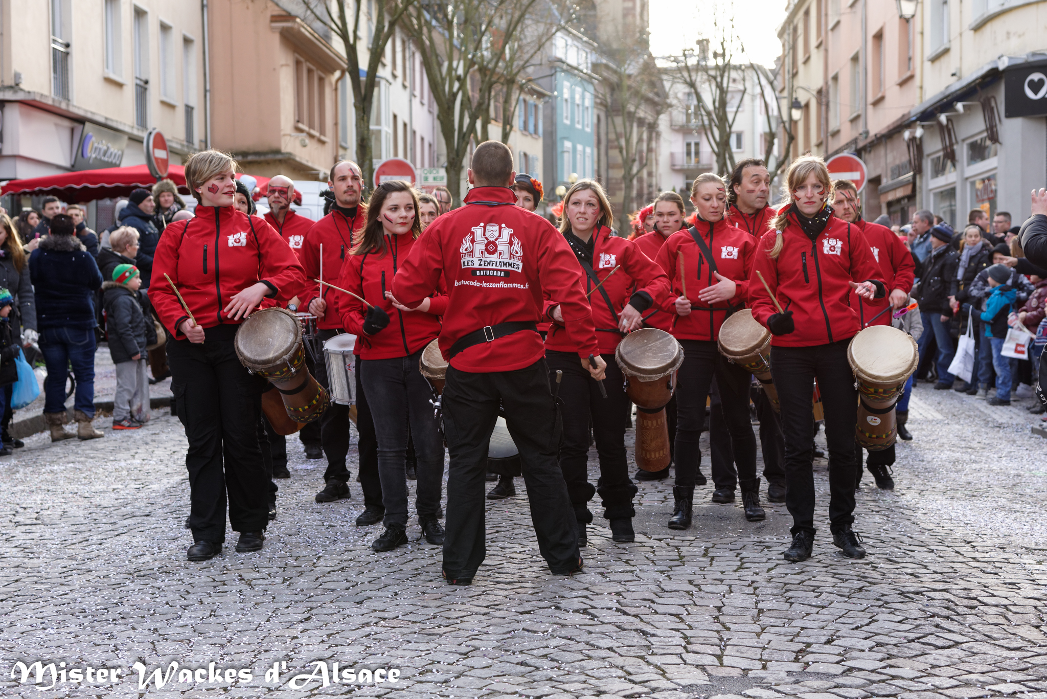Mister Wackes d’Alsace est un habitué du Carnaval de Sarreguemines — il court après les jeunes filles, parfait la coiffure des mamies avec quelques confettis … d’ailleurs on peut se demander qui est le plus filou des deux, Mister Wackes d’Alsace ou sa dulcinée Elsa … mais très vite ils savent se faire pardonner en offrant bonbons et gadgets aux petits et grands.